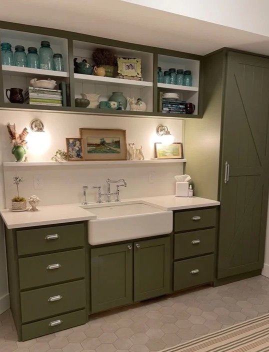 Our new farmhouse mudroom and bathroom looks like it always belonged. As the sun streams through the repurposed utility porch door—the one that our sons, their friends and Mark and I have used for 22 years— continues to tell the story of our family. Caring for future pups, hanging a crisp linen apron on a vintage hook, organizing housekeeping supplies and trimming flowers at the farmhouse sink, standing on “a dry stone floor.”